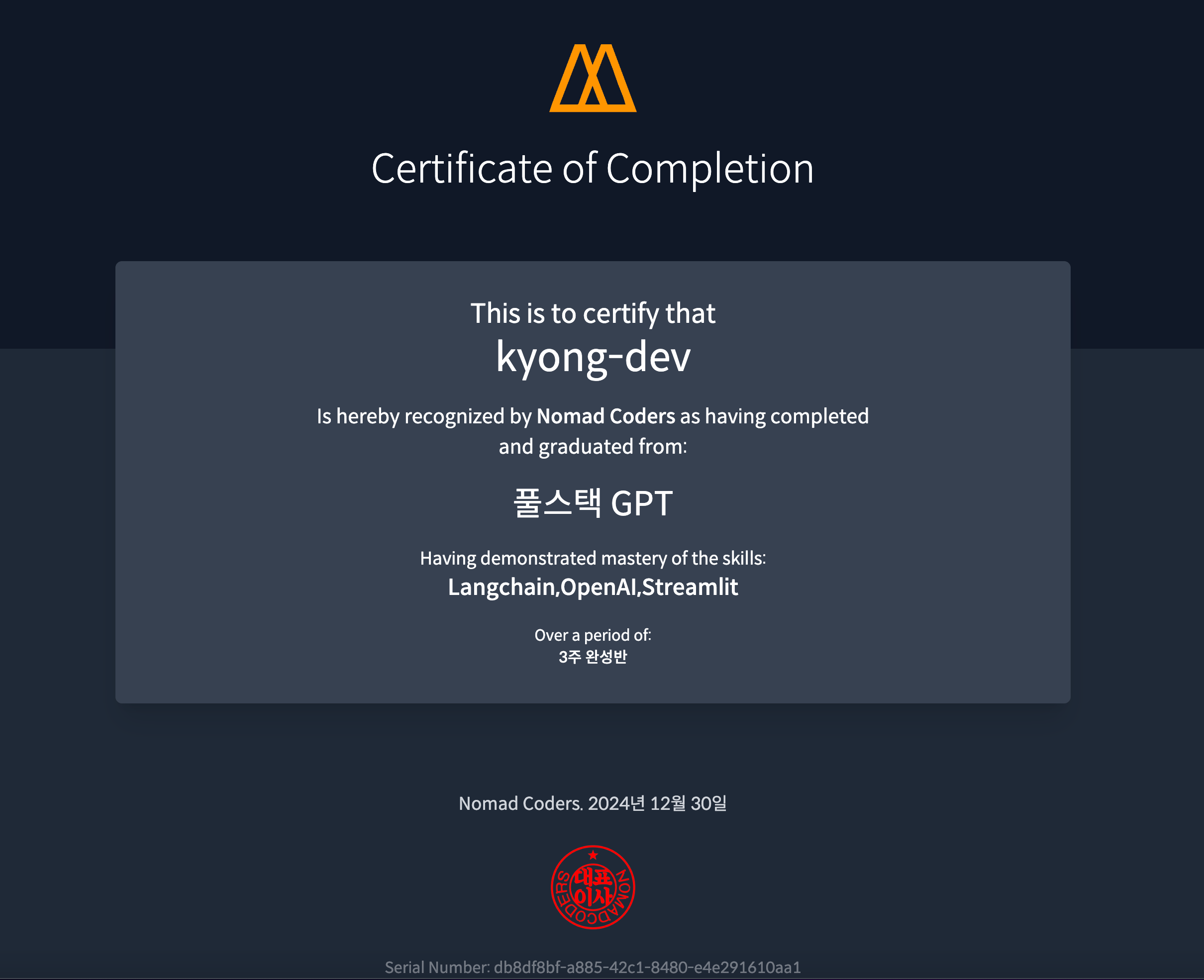 Jupiter Notebook과 Streamlit을 활용해 다양한 GPT 활용법을 공부했다. 아직 부족하지만 원하는 서비스를 만들기 위해 활용방법 정도는 숙지했으니 만들면서 조금씩 다져가면 될 것 같다.